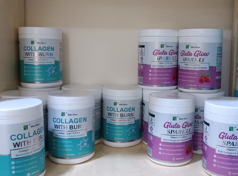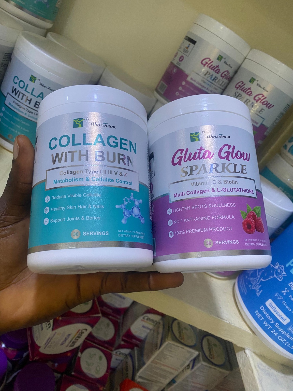 Collagen with Burn by is a dietary supplement powder that contains collagen type I, V, and X. It is marketed for metabolism and cellulite control, and to support glowing and healthy skin, hair and nails, joins and bones. Gluta Glow Sparkle is a dietary supplement powder intended to support skin health. It contains Vitamin C and Biotin: These contribute to overall skin health. Multi Collagen and L-Glutathione: These are included to potentially lighten spots and address dullness, as well as provide anti-aging benefits. 50 servings: The container provides 50 servings.